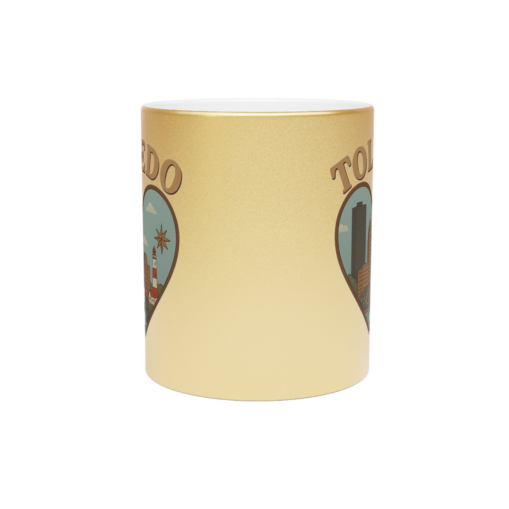 Sip the essence of Toledo with this dazzling metallic mug, where golden sunrises meet the shimmer of silver nights! Encased in a heart of pure vintage flair, it cradles the skyline of Toledo, featuring iconic landmarks that whisper tales of adventure and mischief. Whether you're plotting world domination or simply brewing coffee, let Toledo's bold charm inspire your day with every delightful sip!Product features